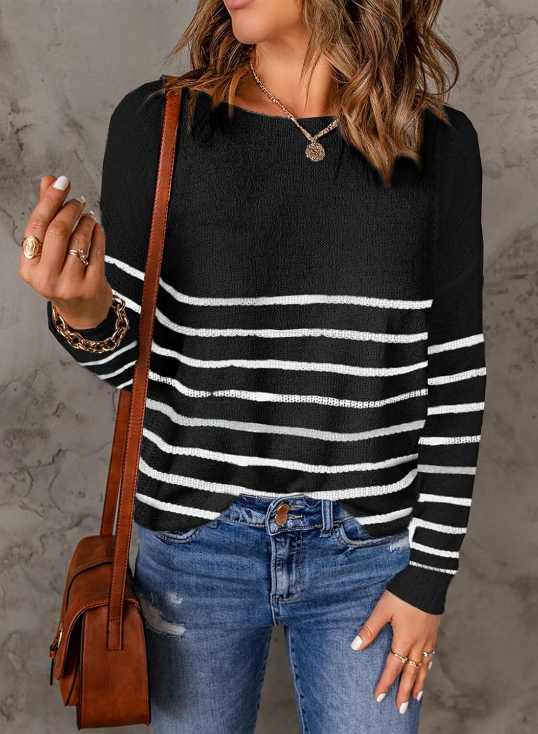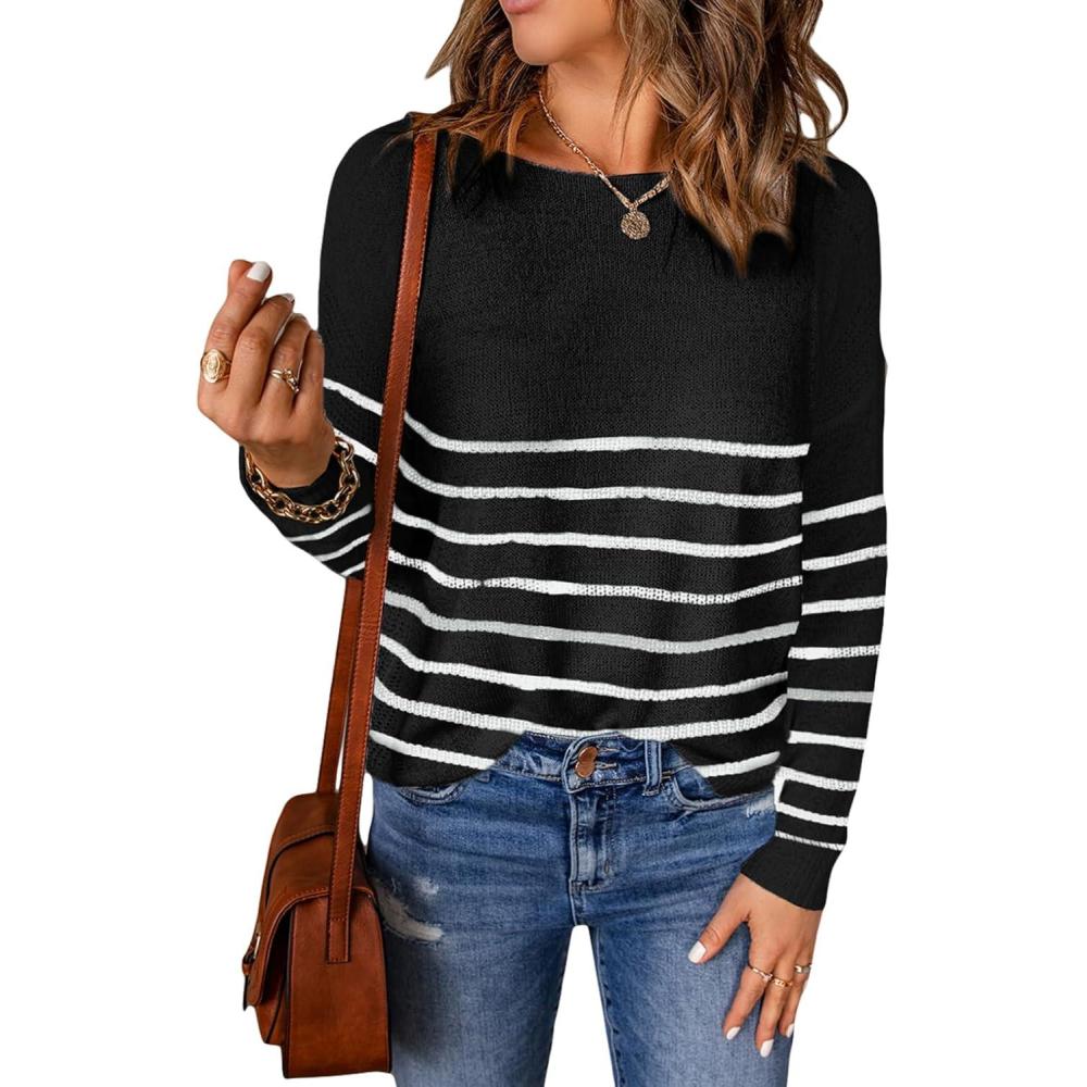 Acelitt Womens Casual Lightweight Long Sleeve Crewneck Knit Shirts Tops, S-XXL(G-stripe1)